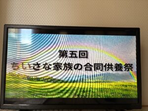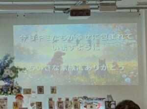 のご供養をさせていただき、ご家族からお預かりしたお写真とその子たちへのメッセージをスライドショーにしたものをご覧いただき、茶話会へ。